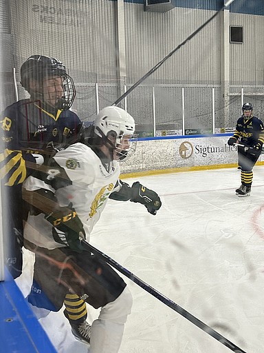 Tränarna pushade killarna hela tiden och nu hände något i hela truppen. Stärkta av målet blev det en annan fart hos de grönvita och vi började skapa en hel del. Wings i sin tur fortsatte att spela bra men vår vilja och kämpaglöd var tydlig. Efter 15 minuter spel vann vi tekningen och #14 Claeson sköt ett raskt skott som passerade Wingsmålvakten. Målskytten till 1-2 ville mer och ett par minuter senare gjorde han en fin soloräd från egen blå hela vägen och avslutade bestämt och #14 Claeson såg till att 1-3 lyste retfullt genom hemmalagets spelares hjälmgaller. De grönvita går till periodvila i ledning 1-3, skott 11-13.